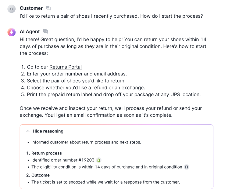Check Reasoning to confirm AI Agent uses your knowledge correctly
