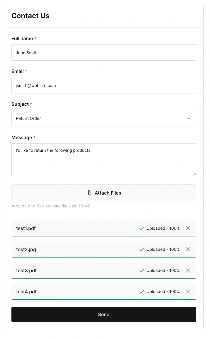 📚 We support all popular file types, and your customers can attach up to 10 files with the max file size of 10MB for each.