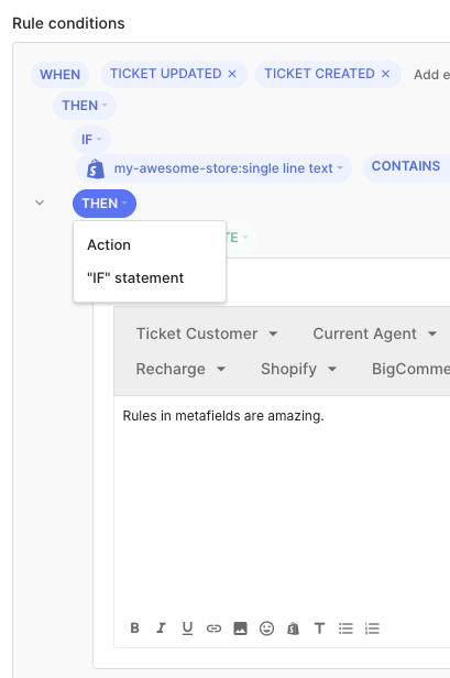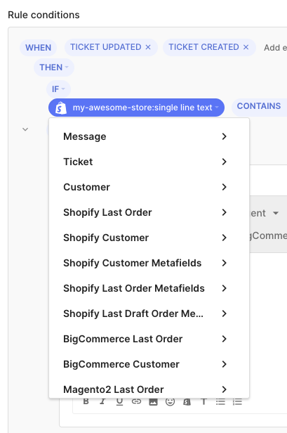 You are now able to pick your most relevant Shopify metafields and use them in rules. This leverages a new flow when speaking of Shopify automations.