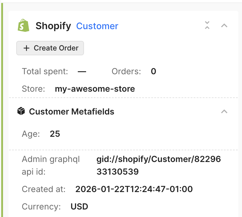 ๐ Open a customer ticket, and view the the metafields in the Shopify widget.